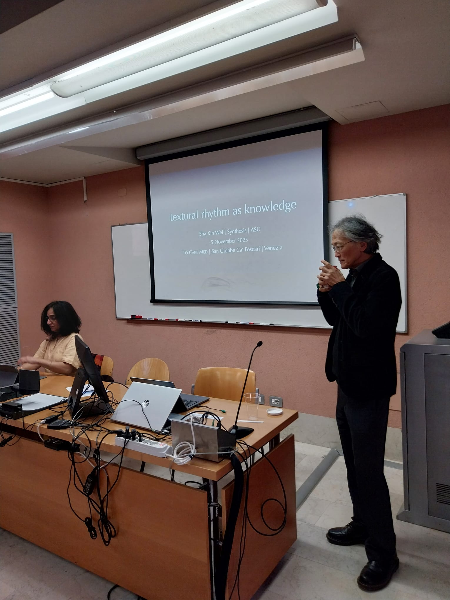 The keynote lecture was delivered by Sha Xin Wei (Arizona State University), professor at the School of Arts, Media + Engineering, internationally renowned for his interactive installations and responsive environments that integrate gesture, movement, voice, and environmental context.